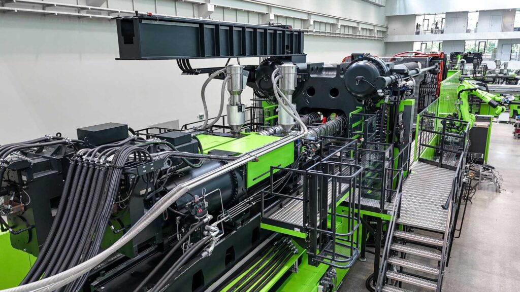 È specificamente progettata per lo stampaggio a iniezione di componenti in plastica di grandi dimensioni, come parti leggere per l’industria automobilistica e dei veicoli commerciali, nonché per pezzi tecnici fino a 2,5 x 2,5 m. L’obiettivo è quello di ridurre il peso dei veicoli, ad esempio producendo componenti leggeri più di grandi, aumentando così l’efficienza del carburante.