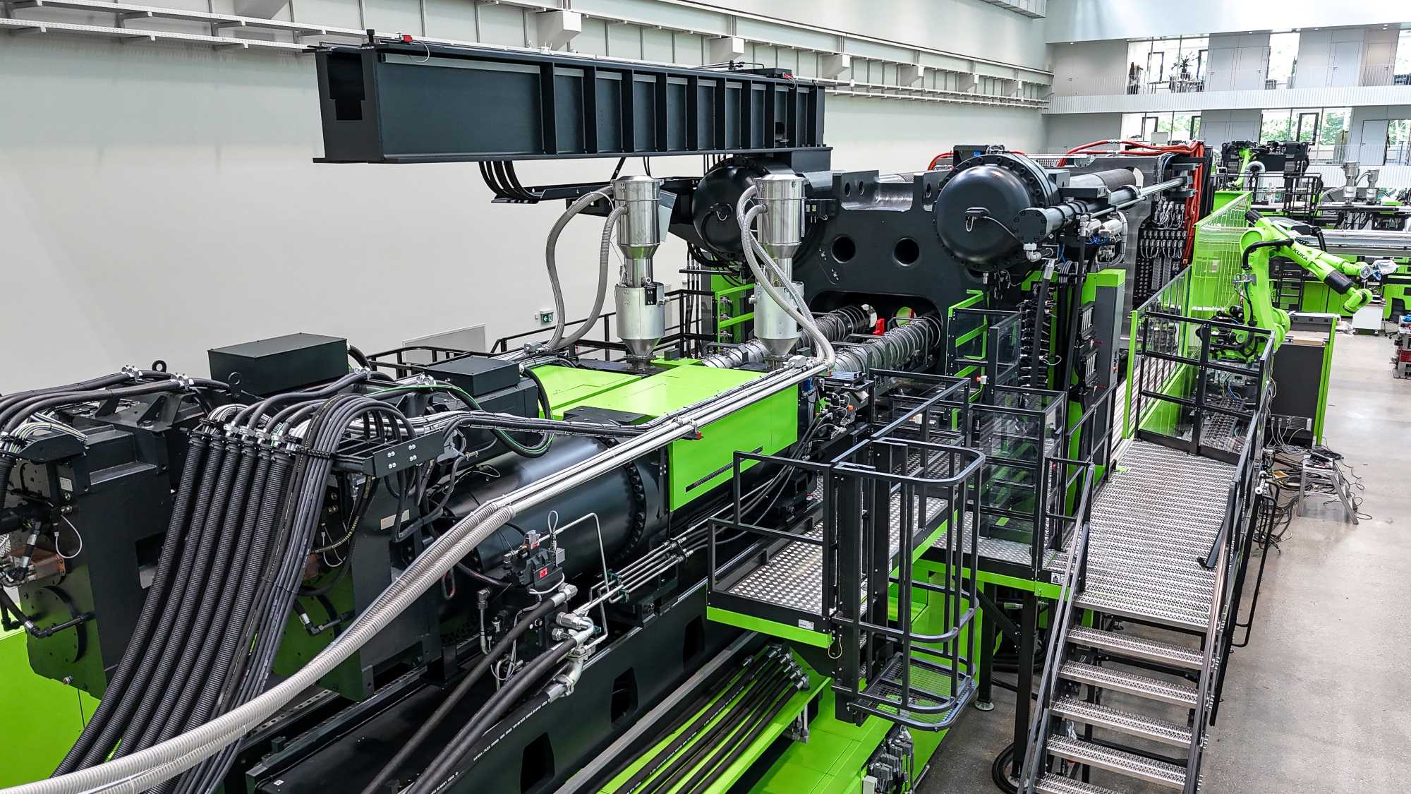 Il noto costruttore Engel ha ampliato il proprio centro tecnico di St. Valentin, in Austria, con una delle più grandi presse a iniezione al mondo installate in un centro di questo tipo: la duo 5500 combi M. Con una forza di chiusura di 55000 kN, 32 m di lunghezza, 13 m di larghezza e 6,8 m di altezza, questa macchina stabilisce nuovi standard.