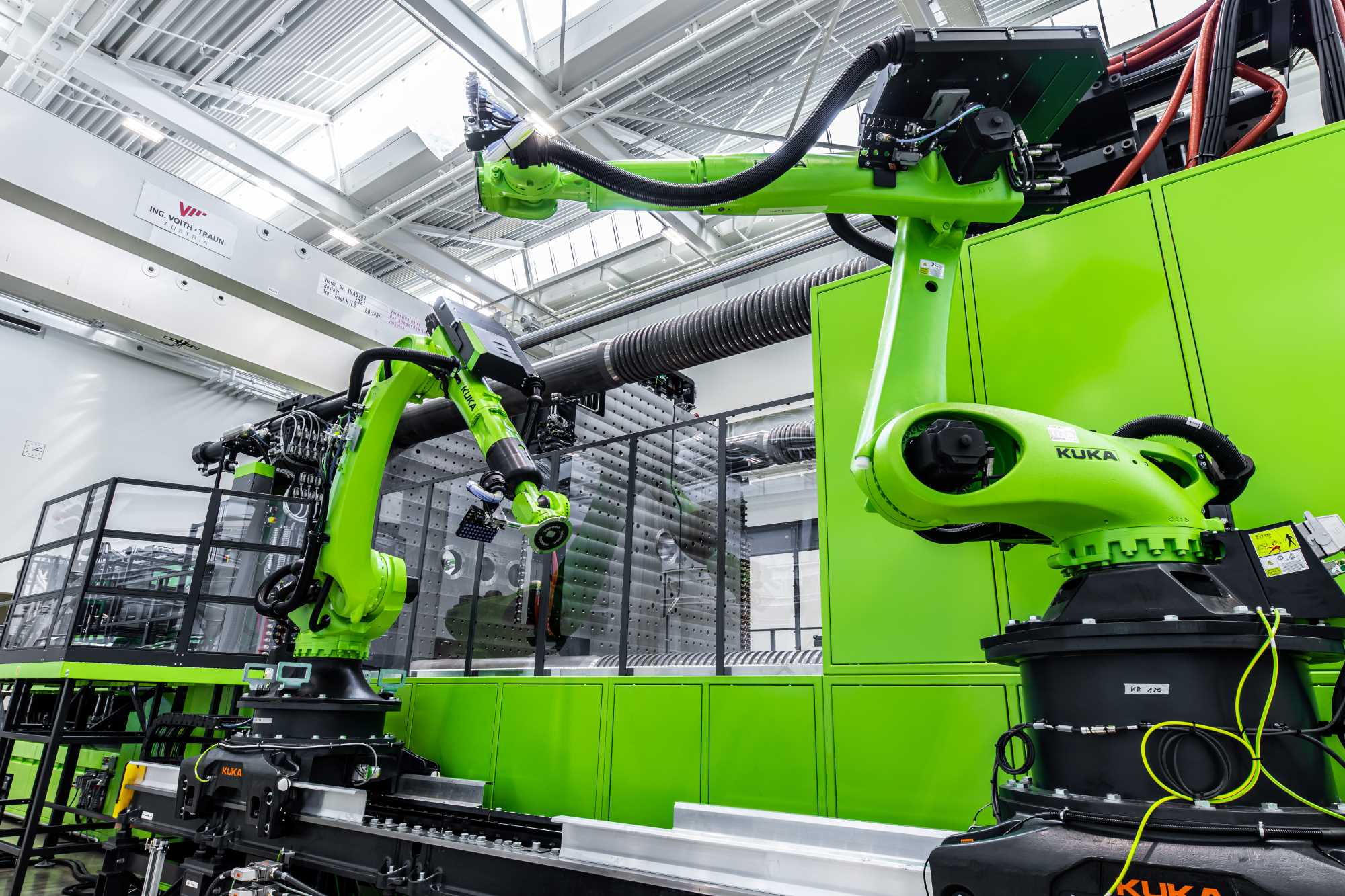 È specificamente progettata per lo stampaggio a iniezione di componenti in plastica di grandi dimensioni, come parti leggere per l’industria automobilistica e dei veicoli commerciali, nonché per pezzi tecnici fino a 2,5 x 2,5 m. L’obiettivo è quello di ridurre il peso dei veicoli, ad esempio producendo componenti leggeri più di grandi, aumentando così l’efficienza del carburante.