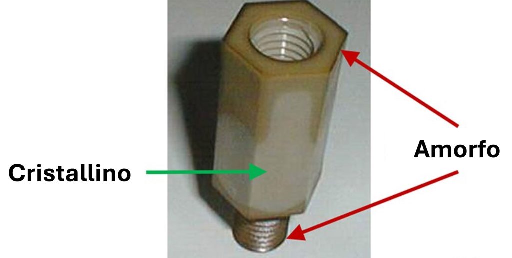 Il PEEK è un termoplastico semicristallino con un grado di cristallinità compreso tra il 30% e il 40%, una caratteristica che gli conferisce un equilibrio ideale tra resistenza meccanica, stabilità dimensionale e facilità di trasformazione.
