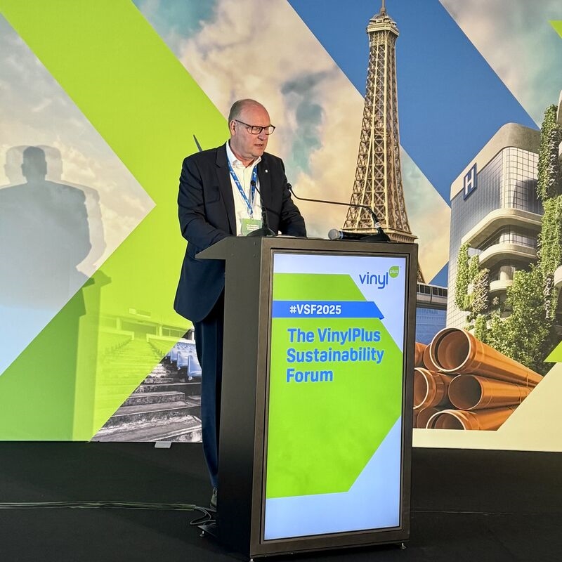 Il vicepresidente di VinylPlus, Casten Heuer, durante il 13° VinylPlus Sustainability Forum 2025 (VSF), tenutosi a Parigi lo scorso maggio