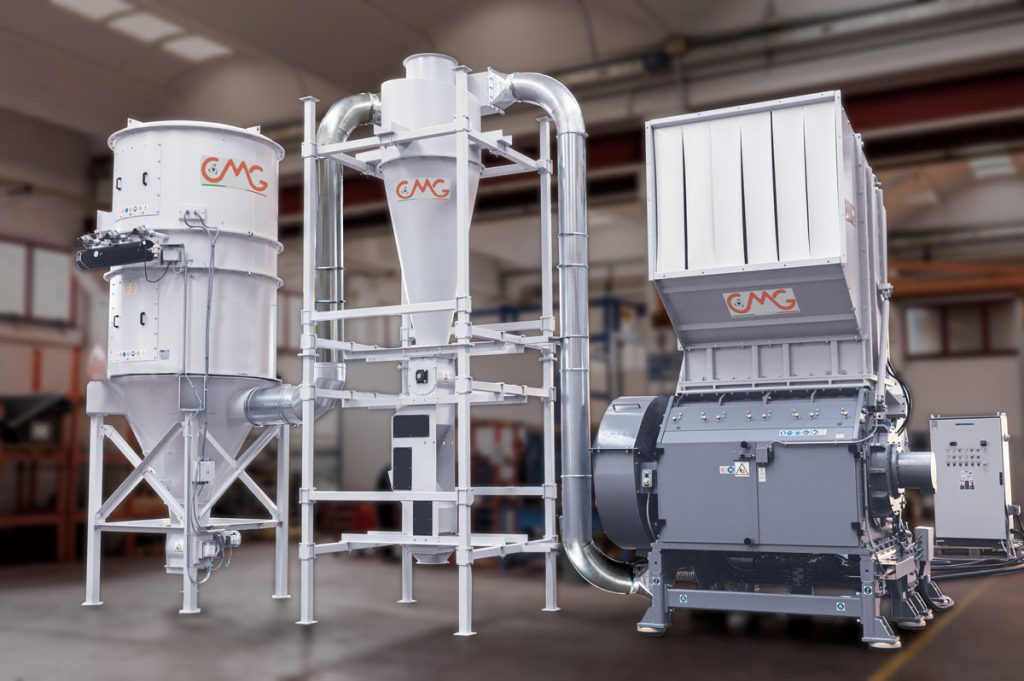 Oltre al design all’avanguardia dei suoi granulatori, CMG Granulators presenta anche la nuova gamma di sistemi di evacuazione, depolverazione e contenimento delle polveri, denominata Regrind Evac System. Le nuove unitàpartono da una capacità di 200 kg/h e, attraverso 10 diverse taglie, raggiungono l’impressionante capacità di 7000 kg/h.