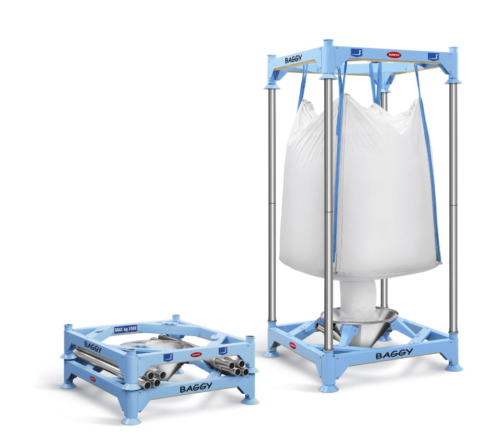 Progettato e fabbricato da Moretto, Baggy è un sistema di sostegno del big bag che consente lo svuotamento del saccone senza dispersione di materiale.