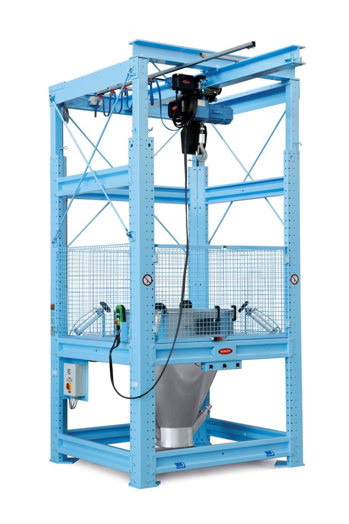 Per lo svuotamento di big bag da 800-1000 kg e 1500 kg, Moretto dispone del sistema dedicato SBB. Le attività di caricamento possono essere gestite con carrello elevatore, oppure con crane di sollevamento.