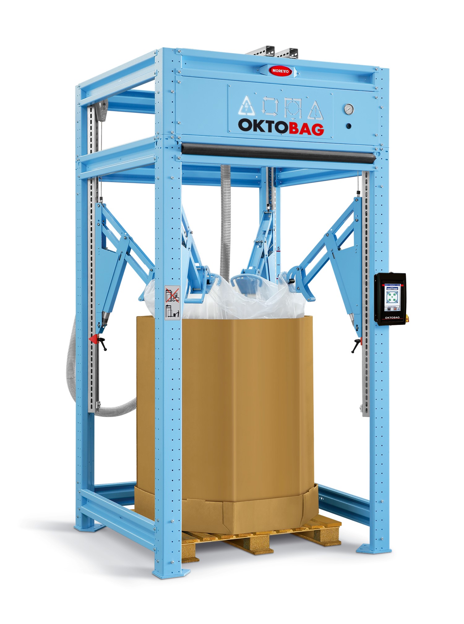 Oktomatik permette di svuotare octabin fino a 1500 kg, con materiali igroscopici o polimeri tecnici.