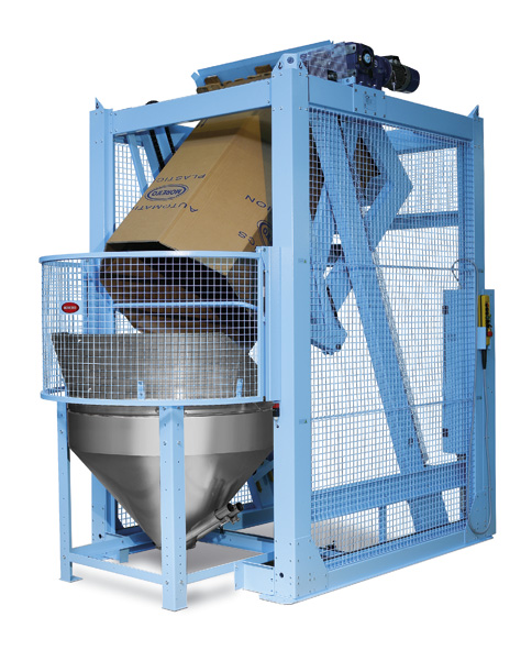 Il sistema è dotato di un’ampia vasca di raccolta del granulo, valvola di aspirazione e anello di sicurezza per l’apertura della bocca del big bag. Nella versione per il trattamento dei flakes e/o di materiali rimacinati, è dotato di spintori e protezioni di sicurezza.