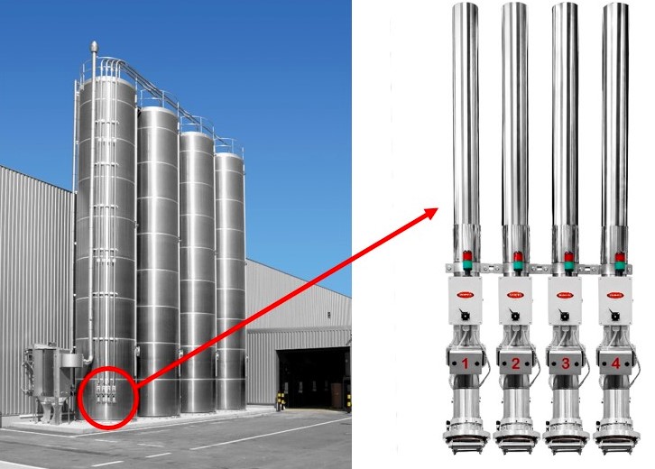 Costruiti in acciaio inossidabile e di forma cilindrica, i siletti di stoccaggio sono completi di coperchio amovibile e valvole di aspirazione a una via, con capacità da 1800 a 30000 dm3.